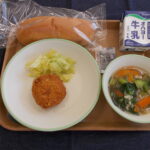3月11日 / 最終更新日時 : 3月11日 okamo10 今日の給食 2026年3月11日(水)の給食 米粉パン 牛乳 カレーポテトコロッケ スチームキャベツ もち麦のスープ(684キロカロリー) 外側はカリッと、中はふわっとのコロッケ。上手にパンに挟んだ人も。スープはもち麦と野菜たっぷりにしてビタミン・食物せんいをしっか […]