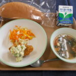 9月17日 / 最終更新日時 : 9月17日 okamo10 今日の給食 2025年9月17日(水)の給食 米粉パン 牛乳 白身魚のカレーフライブロッコリータルタルソース にんじんサラダ パスタスープ(722キロカロリー) カリッと揚がったカレーフライ、大好評でした。今日の魚は「ホキ」、白身のあっさりした魚なので、フライにはも […]