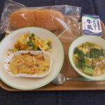 11月26日 / 最終更新日時 : 11月26日 okamo10 今日の給食 2025年11月26日(水)の給食 スイートポテトパン 牛乳 豆のミートグラタン 海そうサラダ もち麦入りスープ(690キロカロリー) グラタンといえば、マカロニやポテトのものをイメージする人が多いと思いますが、今日はポテトと豆(いんげん豆・金時豆・青大豆 […]