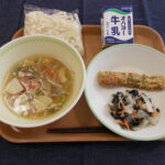 2月16日 / 最終更新日時 : 2月16日 okamo10 今日の給食 2026年2月16日(月)の給食 五目うどん 牛乳 ちくわののり天 酢みそあえ(682キロカロリー) うどんと相性がいい揚げもののひとつ、ちくわの天ぷらです。今日は青のり入りの衣にしました。酢みそあえは、こんにゃく入りにして弾力のある歯ごたえを楽しめるよ […]