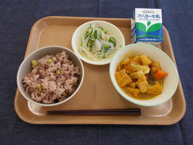 萩の花ごはん 牛乳 厚揚げと昆布の煮物 きゅうりのすのもの(671キロカロリー)