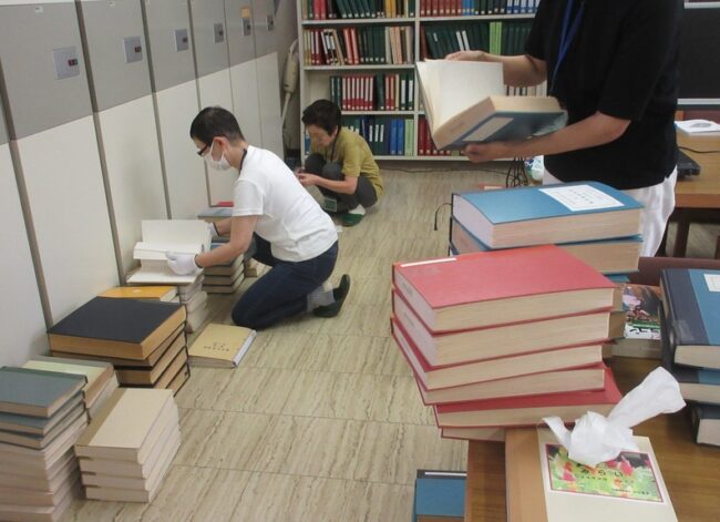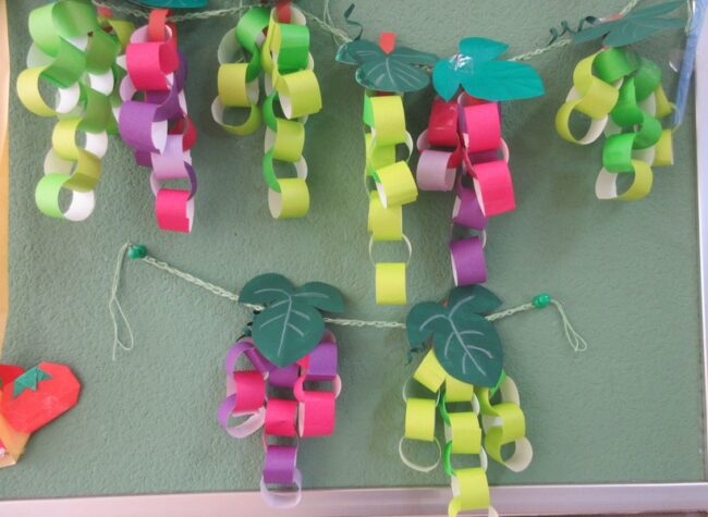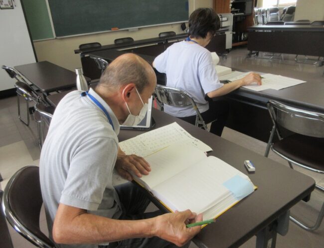 9月18日(木)に今年度3回目の「ボランティアの会」に10名の方に参加していただきました。グラウンドの整備は雨のため中止となりましたが、今回は点字教科書の墨訳、壁面の飾り作り、本の整理の3つの作業をしていただきました。墨訳は国語や社会の教科書を墨訳していただきました。壁面の飾り作りは黄緑色や萌黄色を使ってマスカットをモチーフにした飾りを作っていただき、図書館では本の手入れや整理をしてくださいました。ご協力ありがとうございました。