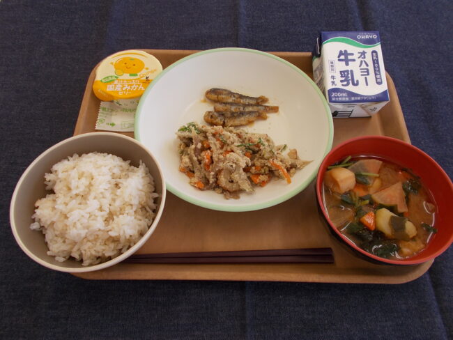 麦ごはん 牛乳 ままかりの三杯酢 卯の花いり 赤だし みかんゼリー(677キロカロリー)