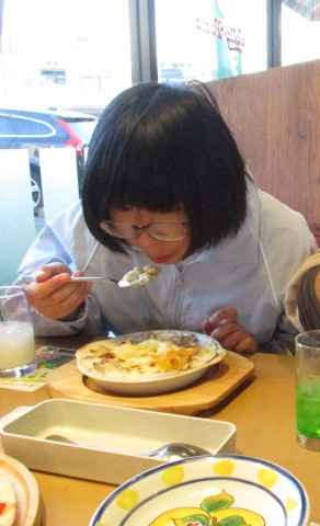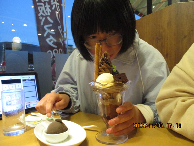11月6日木曜日の下校後、ジョリーパスタ原尾島店まで外食にでかけました。 タッチパネルで自分の食べたいものを選んで注文したり、自分で紙幣を支払い機に入れて支払ったりと、とてもよい経験になりました。デザートに食べたチョコレートパフェは、とりわけおいしかったようです。