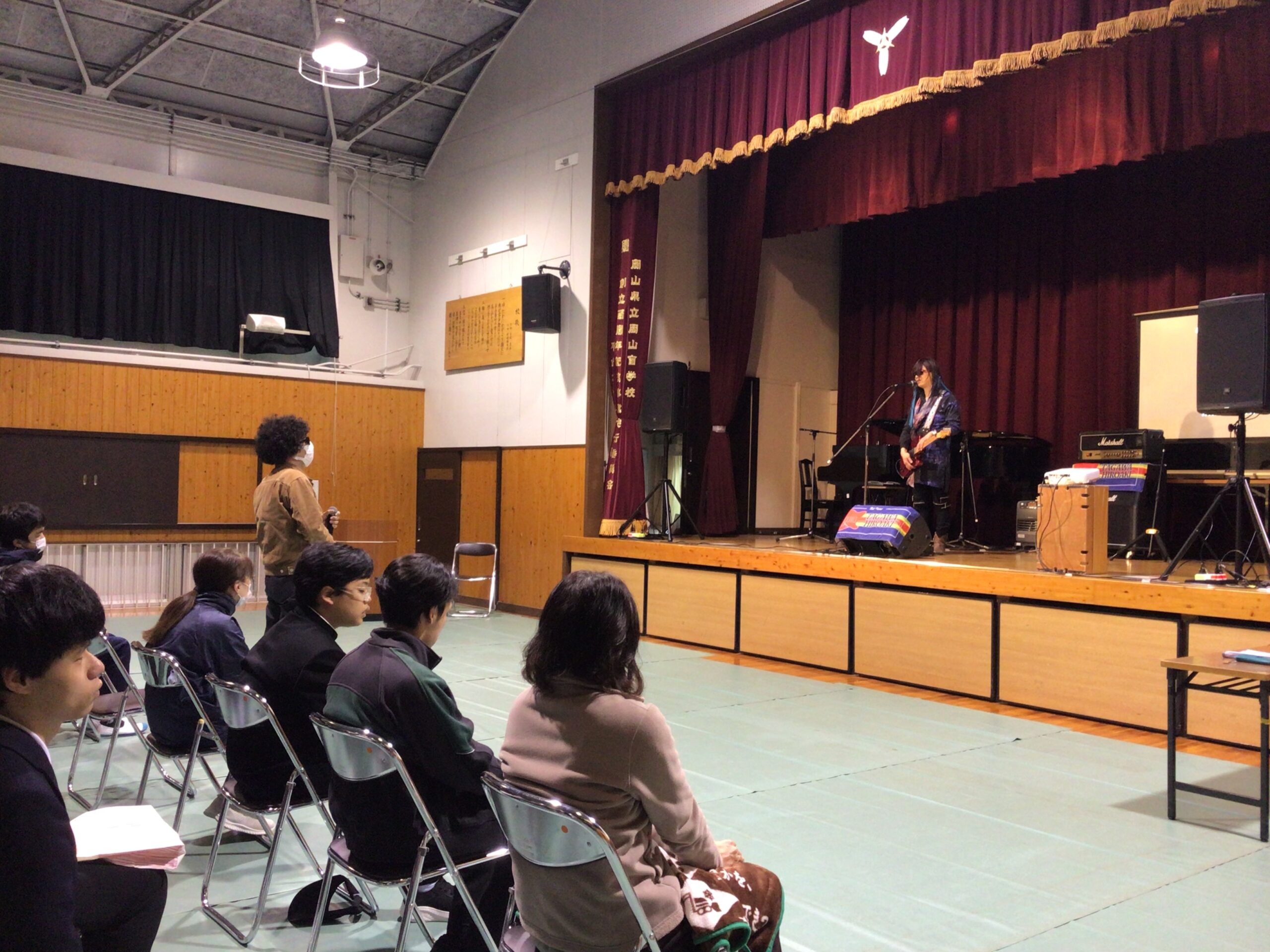 創立117年、創立記念日である今日11月25日に、日頃からお世話になっているボランティアや地域の方々を招待して、田川ヒロアキさんのコンサートを本校で開催しました。田川さんのギター、歌、ピアノにトークに魅了されっぱなしの90分でした。田川さんは、東京パラリンピック開会式やスポーツオブハートinEXPO2025大阪関西万博のフィナーレでも演奏されています。そこに至るまでの努力や心持ちに勇気づけられ、感銘を受けた児童生徒も多くいたようです。コンサートの帰りには、奥さまと一緒に点字ブロック記念碑にも寄られています。さあ、私たちも、夢に向かって、そして夢を叶えるための目標に向かって、気持ちを強くもって前進していきましょう!