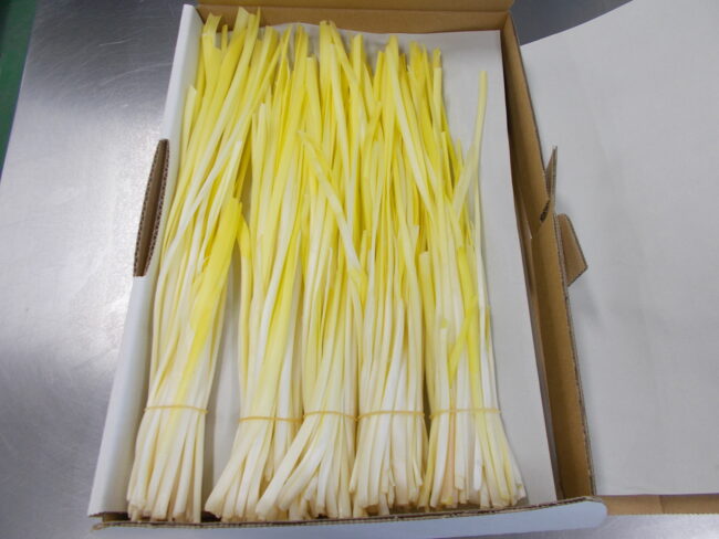今日は2月12日の黄ニラの日に合わせて黄ニラ入りのすまし汁です。今日も黄ニラ大使の植田さんの黄ニラです。昨日、ちょうど給食時間の頃の納品だったので、黄ニラの日の話や、今の時期が旬であることをお話していただきました。(Instagramではその様子を動画で紹介しています!)そして今日です。「香りがいいねえ~」「いい黄ニラですね」植田さん、いつもありがとうございます。