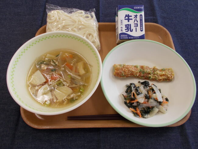 五目うどん 牛乳 ちくわののり天 酢みそあえ(682キロカロリー)