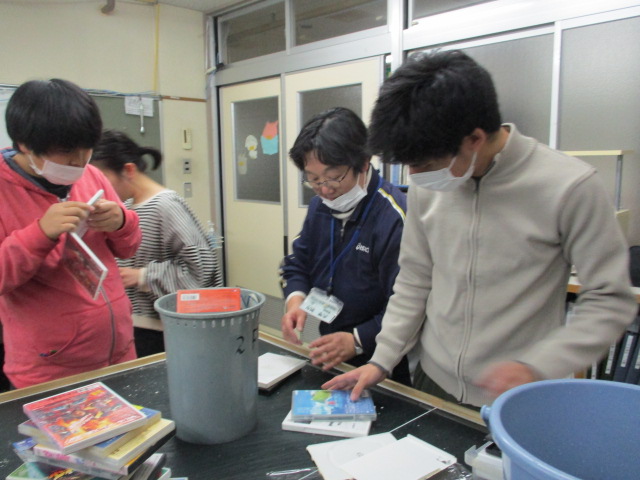 2月26日 / 最終更新日時 : 2月26日 okamo10 00岡盲の今日 明扇会活動 図書室の片づけ 明扇会の呼びかけで、有志で図書室の片づけをしました。破損したDVDケースからDVDを取り出して新しいケースに入れ替えたり、拭き掃除をしたり、プラスチックと紙を分けたり、ごみ捨てに行ったりするなど、役割分担をして片づけました。