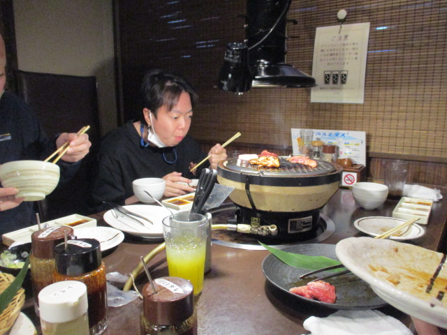 舎生からの発案で、焼き肉「まんぷく」へ行きました。お店では、きれいに大皿に盛ったお肉に一同大興奮しました。お肉の焼き加減は、音や硬さを感じながら焼く経験をしました。お肉は、とてもおいしくご飯もすすみました。今回は市バスを利用しました。行きは曇りで、帰りは雨が降って暗く見にくかったですが良い体験になりました。