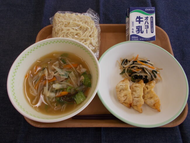 3月9日 / 最終更新日時 : 3月9日 okamo10 今日の給食 2026年3月9日(月)の給食 しょうゆラーメン 牛乳 揚げぎょうざ もやしのごまあえ(714キロカロリー) ラーメンと揚げぎょうざ、人気の組み合わせですね!野菜のうまみたっぷりのスープでいただきます。