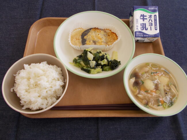 ごはん 牛乳 さわらのみそマヨネーズ焼き わけぎのぬた いももち汁(726キロカロリー)
