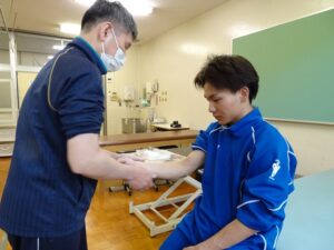 今日のシチューはオレンジ色です。すりおろしたにんじんをホワイトシチュー加えているのです。にんじんの甘味も加わってやさしい味になりました♪