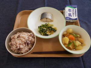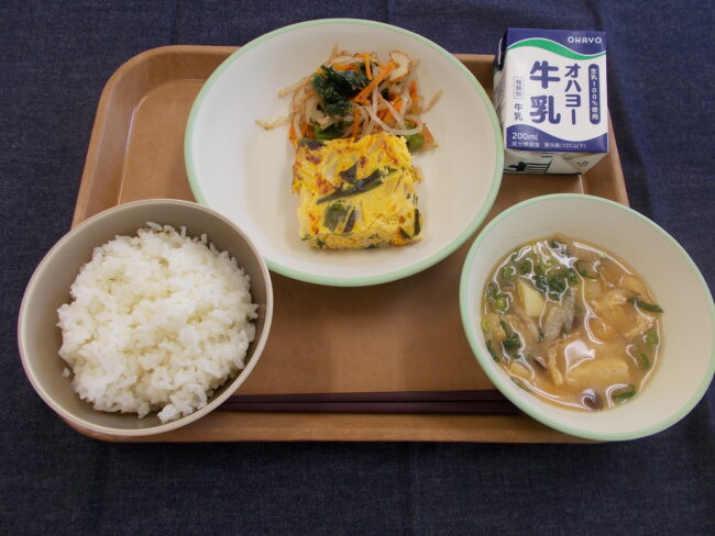 ごはん 牛乳 五目たまご焼き おかかあえ 油揚げとじゃがいものみそ汁(679キロカロリー)